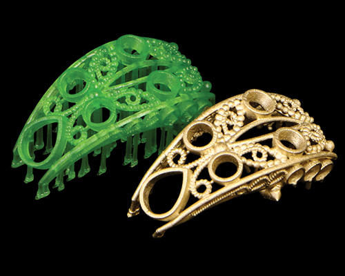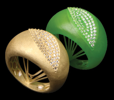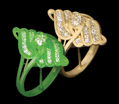 With the high quality of our Mega 3D Printer, you able to easily set stones directly on printed resin parts and cast with stones as well.